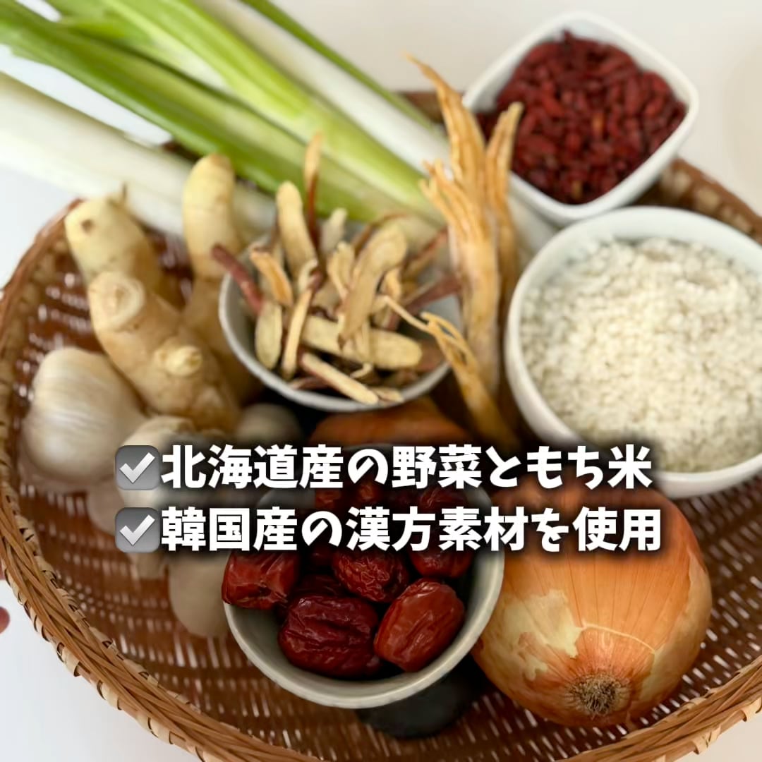 高麗人参(韓国産)、なつめ(韓国産)、クコの実(韓国産)、甘草(韓国産)、食塩(天日塩)